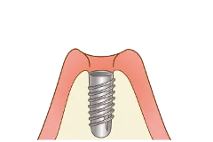 歯を失っている箇所の骨にインプラント体を埋入します。手術後、傷の治りを待ち、インプラント体が骨と結合するまで回復期間を設けます。上顎は約5~6ヵ月、下顎は約2~3ヵ月の期間になります。(個人差がございます。)