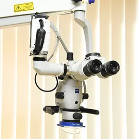 マイクロスコープ(顕微鏡)は、対象物を肉眼の30倍以上拡大することができ、患部の状態をより正確に把握し、精密で的確な治療を可能にします。 歯科医療の先進国であるアメリカでは、ほとんどの歯医者で導入されていますが、日本での普及率は高くなく、わずか数%であるのが現状です。 当院では、すべての治療で拡大鏡を使用。根の治療や、詰めもの・被せもの、歯周病の治療や小手術など、必要に応じてマイクロスコープを用いて、より精度の高い安全・安心の医療を提供しています。